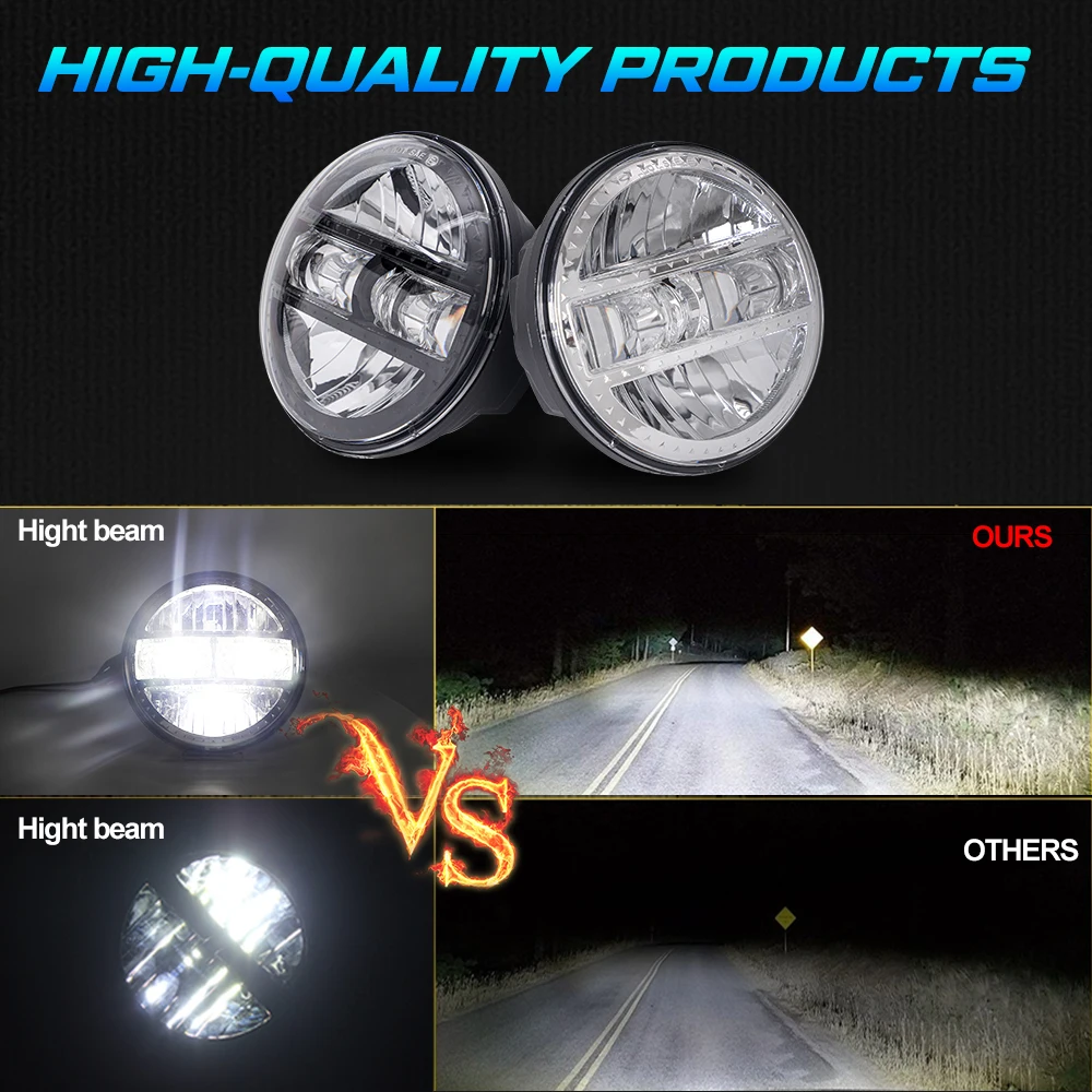 4.Standard H4 plug, easy installation, play and plug. Brand new upgraded for DRL, low beam and high beam.